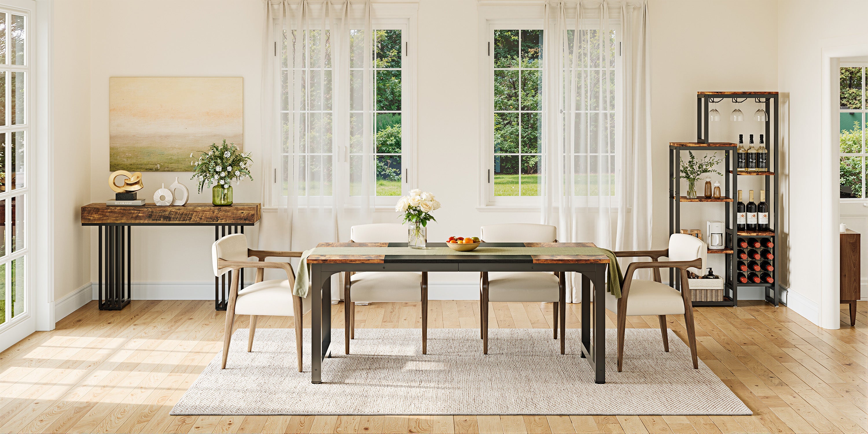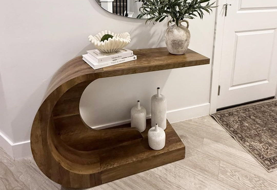 Tribesigns Console de 160 cm en bois massif avec pieds d'artiste, Table basse de style champêtre pour couloir et salon