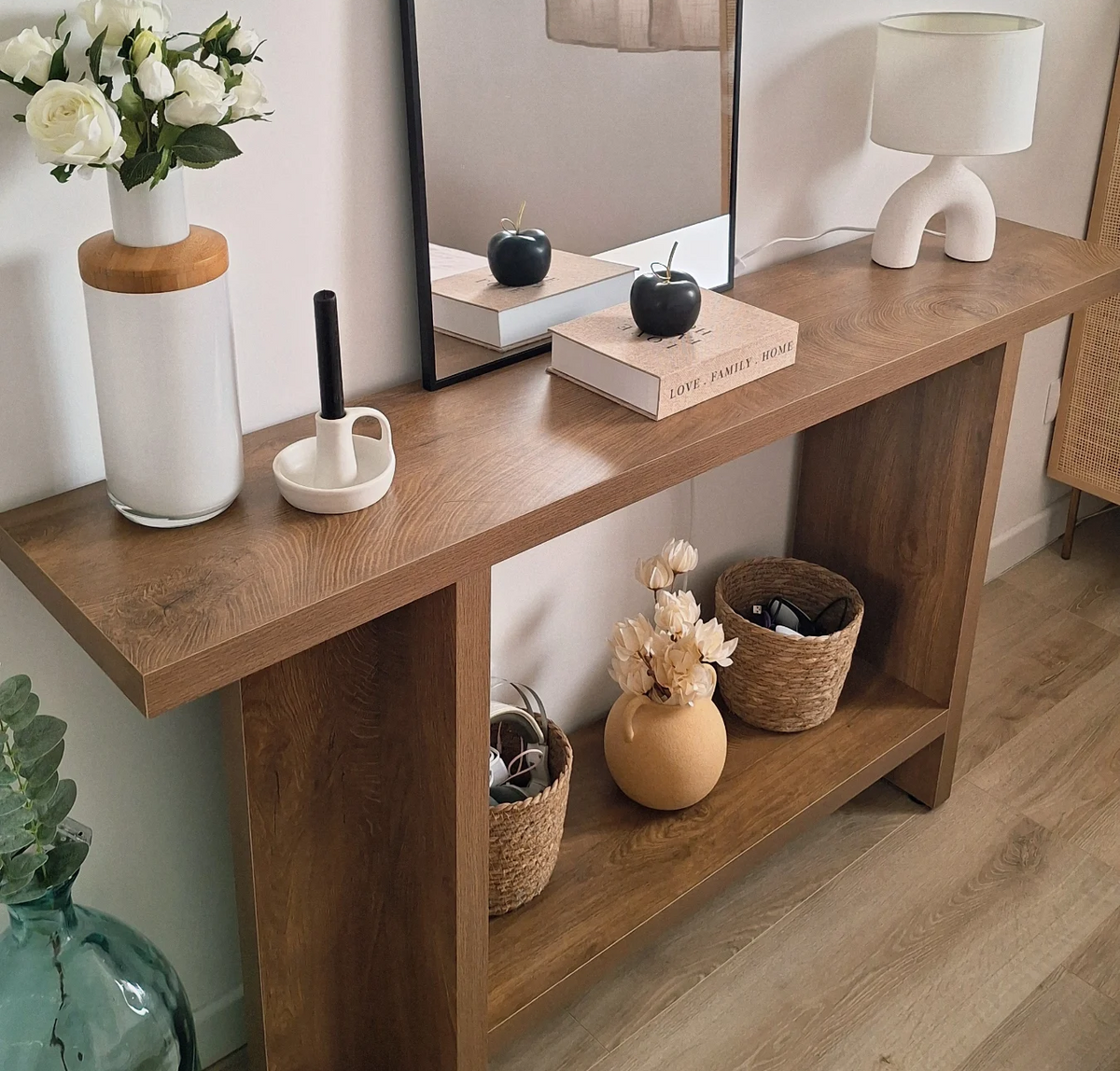 Tribesigns Console en bois massif de 100 cm avec étagère inférieure, Table d'entrée étroite de style champêtre